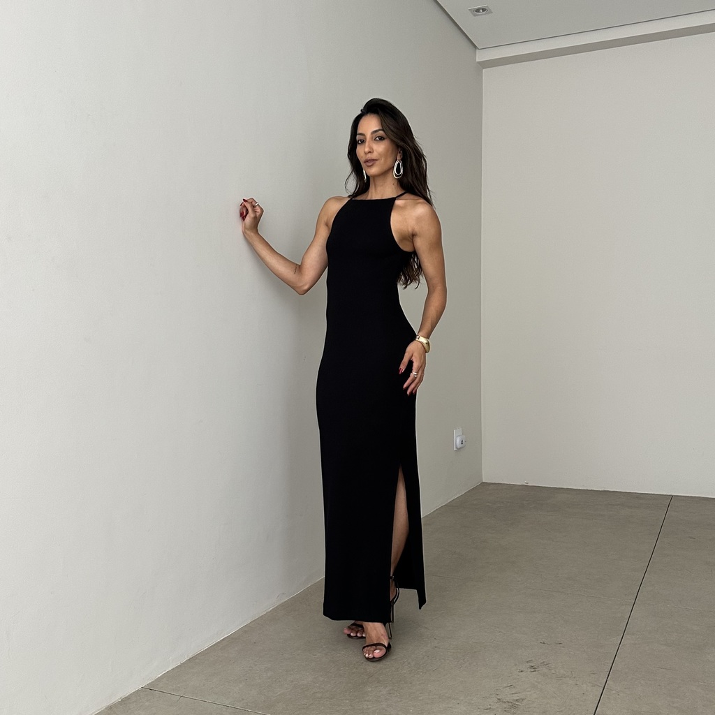 Conheça o Vestido Leticia - Preto, um vestido midi canelado que exala elegância e estilo. Com uma fenda lateral ousada, gola halter e alças finas, este vestido destaca sua silhueta de maneira sofisticada. Ideal para ocasiões especiais ou para um look casual chic, sua cor uva traz um toque de modernidade e sofisticação. Transforme seu guarda-roupa com essa peça versátil e apaixonante!